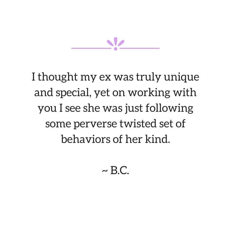 I thank you. My attorney will thank you. I will refer to this often when I need to explain what happened to me, the depth of betrayals are so difficult to describe, until I read this.
