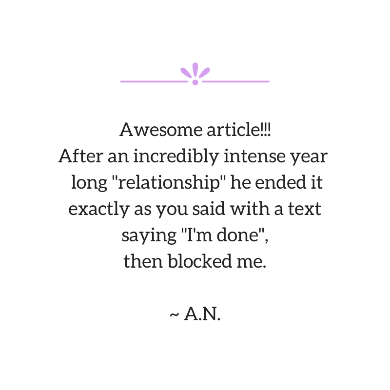 This was a great article and you are a very good writer. Nailed it. My experience was not with a boyfriend but with a “friend”/business partner – they are mentally ill and have bad souls. They are evil and they can’t help it. It’s tortuous both ways – horrible illness.