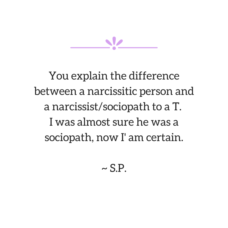 A sociopath – and maybe you’re using the word narcissist – needs credibility, so normal people trust them for one reason and one reason only: so they can take whatever they need and want.