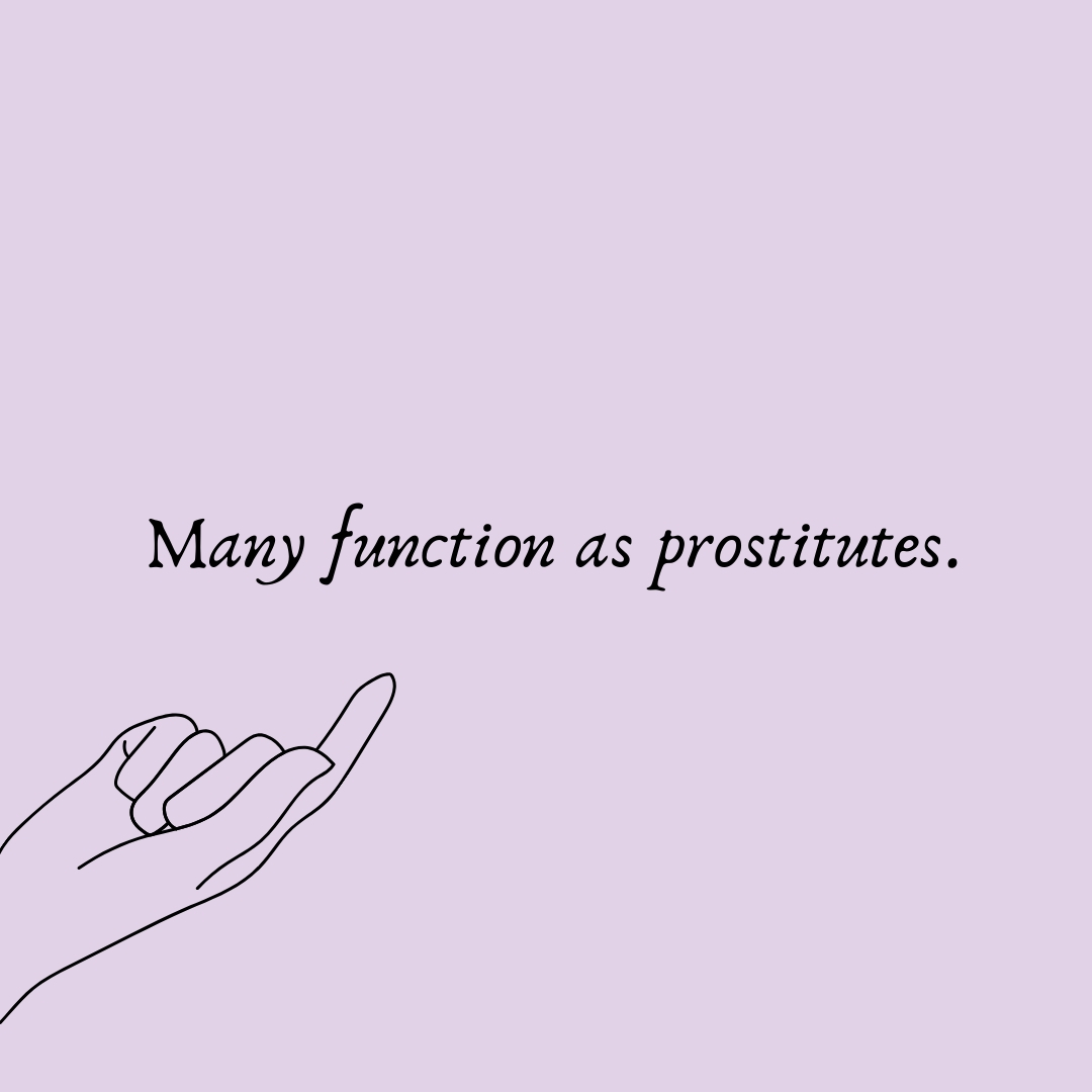 Prostitutes: They can easily go to them. They can easily sell themselves if it’s their thing. Being an “escort” is an easy-peasy job for them. It’s all about pretending anyway.