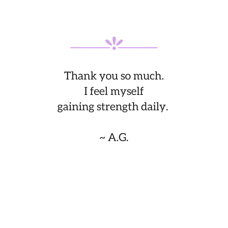 After our first session, I was left feeling very empowered, and I’m excited to continue the conversation! You’re one of the only people out there who understands this like this; I think maybe you’re the only person. You have a way of simplifying the pieces and elements. I’m very glad to have talked to you. ~ G.D.